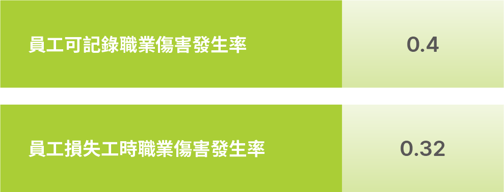 此外,為掌握作業環境實態與評估員工暴露狀況,以預防職業疾病,整體生產廠區皆依當地法令規定執行作業環境監測,監測項目包含化學性與物理性因子,化學性因子監測項目主要為異丙醇、錫、甲苯及鉛;物理性因子監測項目主要為噪音、照度及風速,所有監測結果皆符合當地法令規定並公告周知。