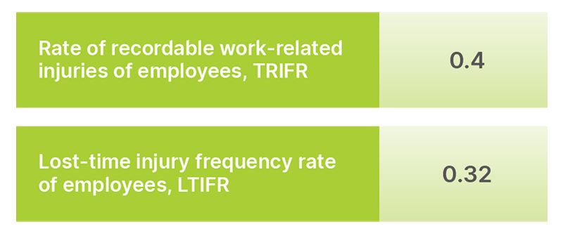 To ensure the safety of employees, OHS personnel conduct plant safety inspections on a regular and as-needed basis to oversee personnel operations and environmental safety. These safety inspections include electrical safety, fire safety, machinery/equipment/tool management, chemicals management, workplace, and safe operating procedures and protection. Deficiencies found in 2024 were mainly electrical safety (27%), workplace (22%), and machinery, equipment, and tools (21%). All deficiencies were corrected with guidance from the OHS personnel in the plants and the supervisory unit.